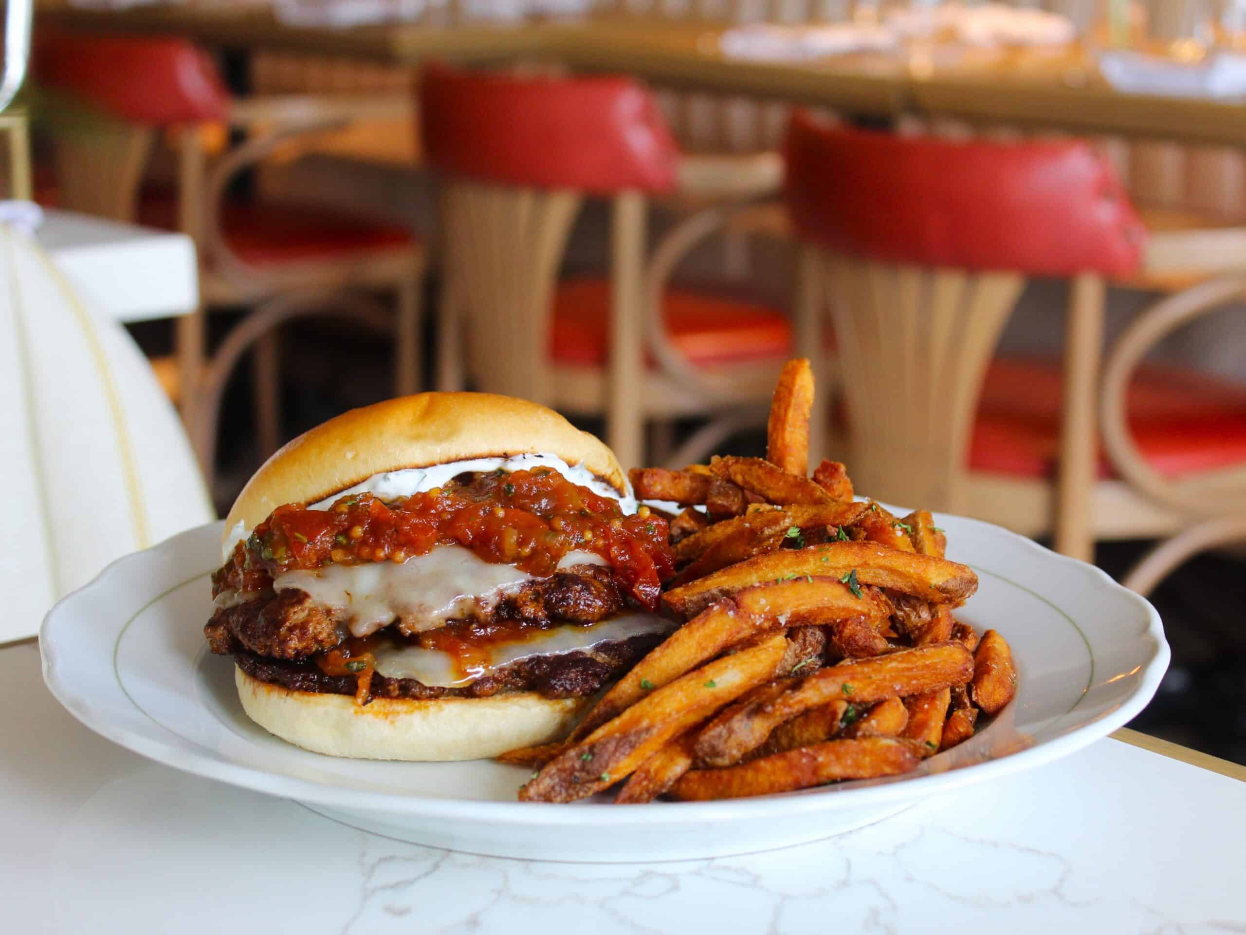 Say bun-jour to Café Lunette’s Merguez Burger, an indulgent lamb offering topped with cheddar, harissa, tomato chutney, mint crème fraîche and arugula.