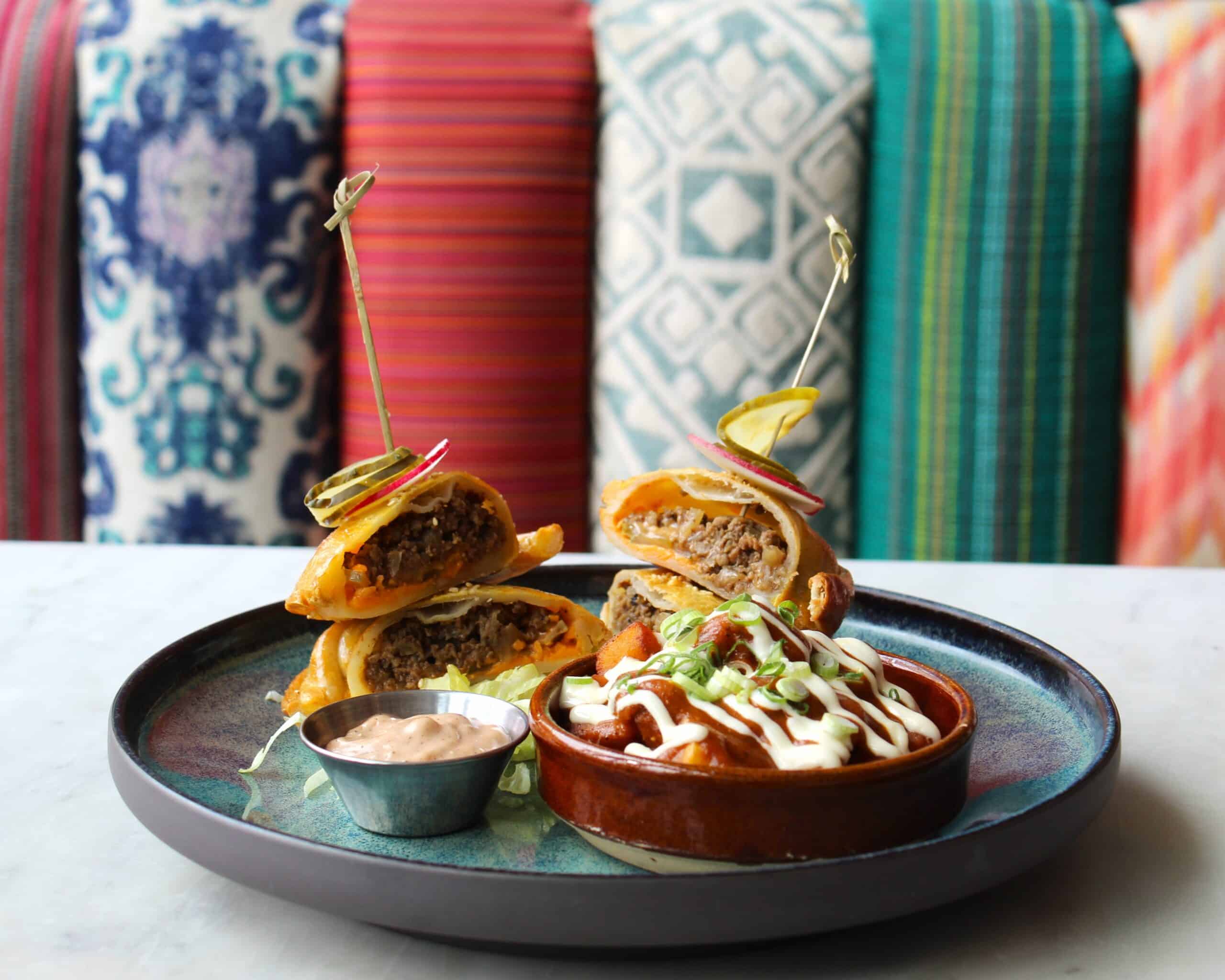 Stop by Bar Sofia for brunch, lunch or dinner and devour Sofia’s Cheeseburger Empanadas filled with beef, cheddar, dill pickles and mouthwatering mac sauce, complete with a side of spiced papas bravas.